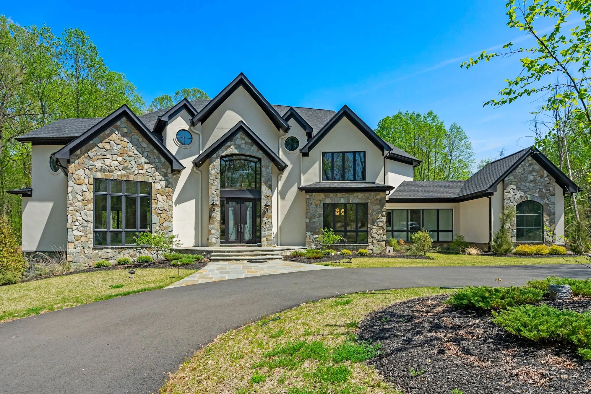 The homes distinctly French exterior details are balanced with modern finishes and an interior that speaks in an edgy, contemporary voice and will equally handle old masters and modern abstracts of interior design. The grand foyer embraces a breathtaking oval-shaped, sweeping glass floating staircase that serves as the centerpiece of the home. Symmetry prevails on either side of the foyer with the facing living and dining rooms, both equally serene in attitude and warmed by natural light. A unique, stunning glass walled breezeway connects the three-car garage to the home's main living area, which additionally includes a grand open plan family room with an enormous contemporary main kitchen as well as a full secondary caterer's kitchen, five all on-suite bedrooms, formal and informal main level powder rooms, breathtaking raised terraces with natural woodland views in a flat 2-acre lot, and fully-finished basement with a dedicated space for a wine cellar. Very convenient location, close to Tysons corner, IAD international airport, and all major roads.